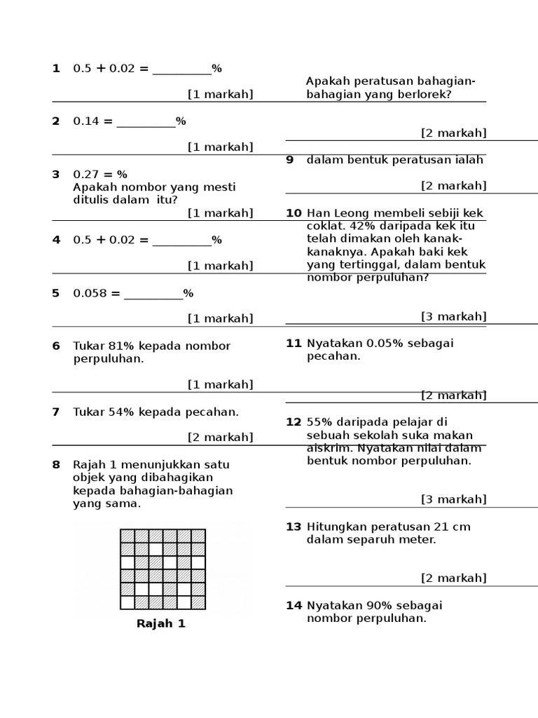 Latihan Matematik Tahun 5 Pecahan Peratus Perpuluhan Pdf